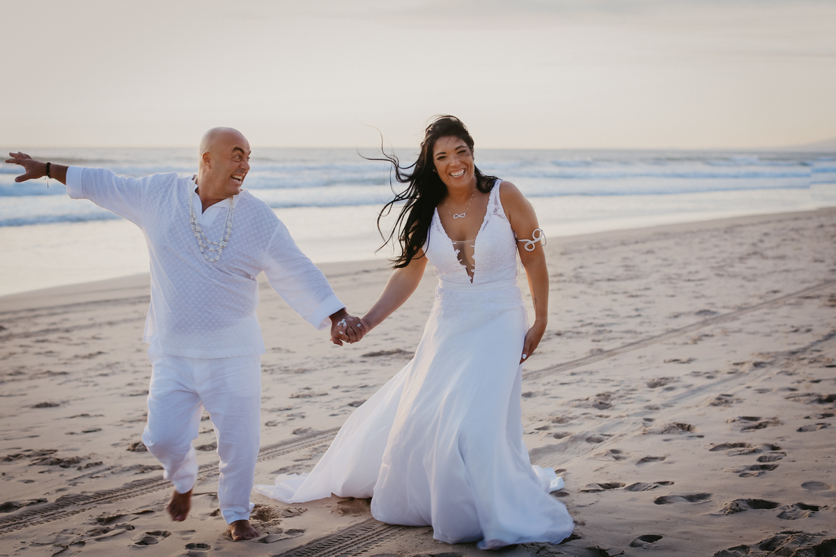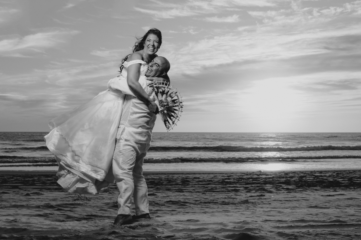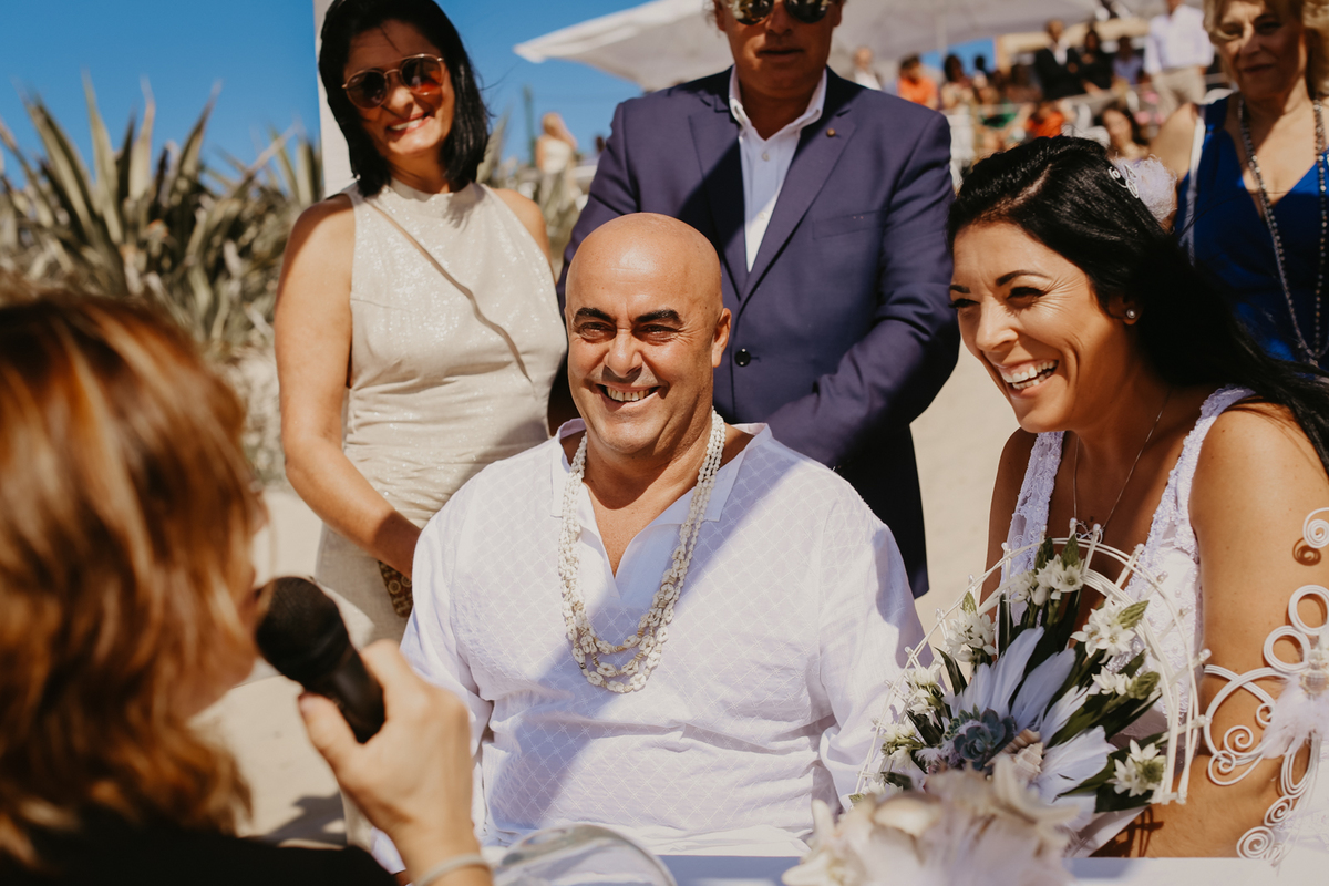 Tudo a beira da praia, tal qual os noivos sonharam. E papai do céu, não poderia ter sido mais generoso em conceder um belo dia, com direito ao tão planejado por do sol.