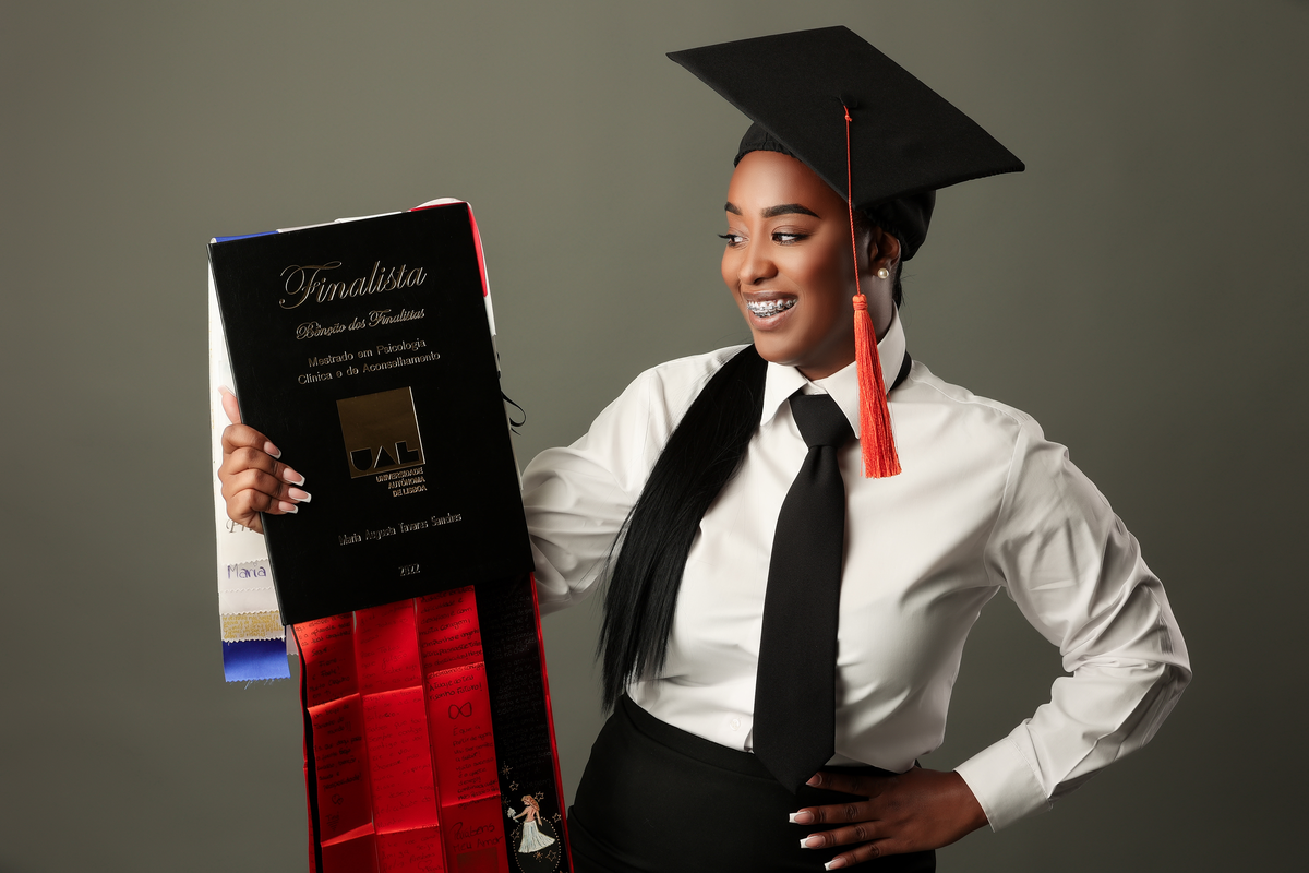A sessão de fotos da formanda Maria, que concluiu com louvor, sua graduação em Psicologia.
